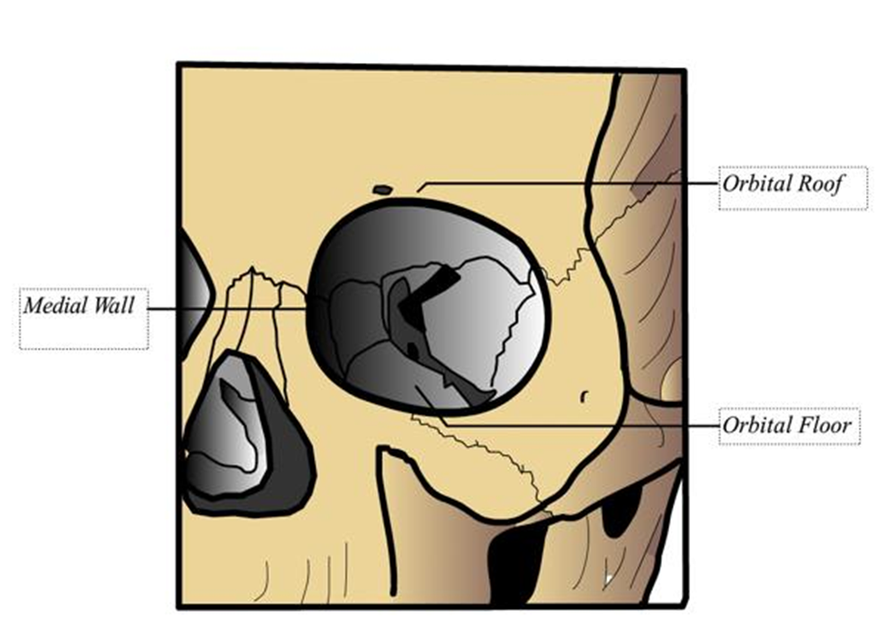 Figure 1: Bones of the orbit form the roof, inner wall, outer wall, and floor.